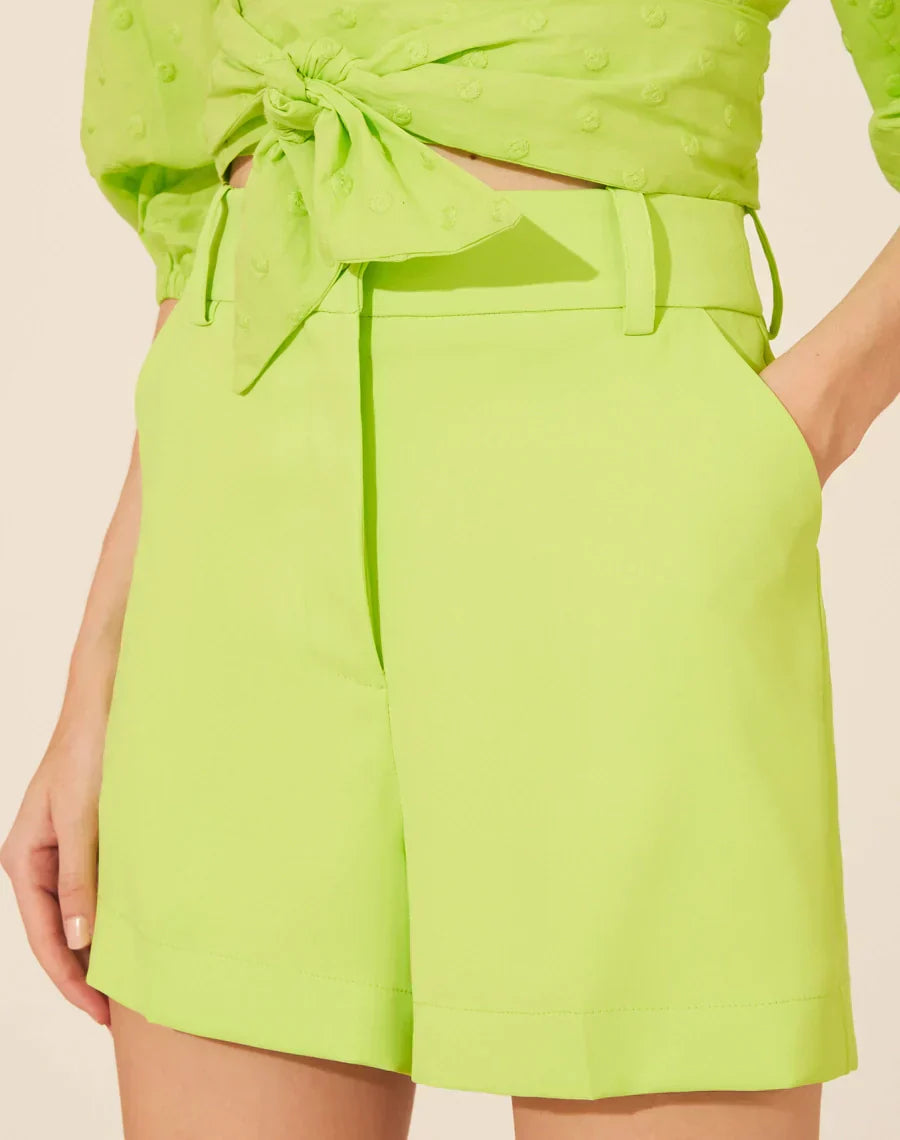 Shorts Josy confeccionado em Crepe Gabana. Possuí dois bolsos laterais tipo faca e dois bolsos posteriores decorativos. Fechamento por zíper e botão forrado.