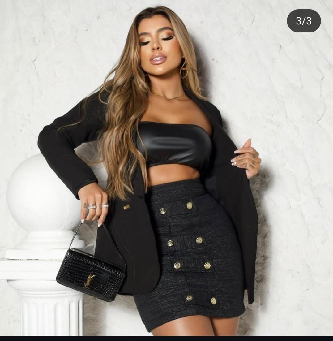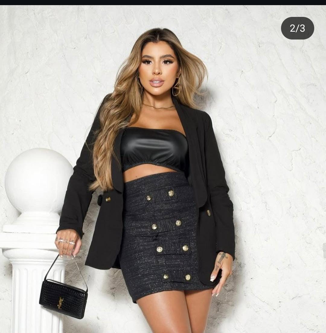 Medidas da Modelo: Altura: 1,68m. Busto: 88cm. Cintura: 65cm. Quadril: 94cm.