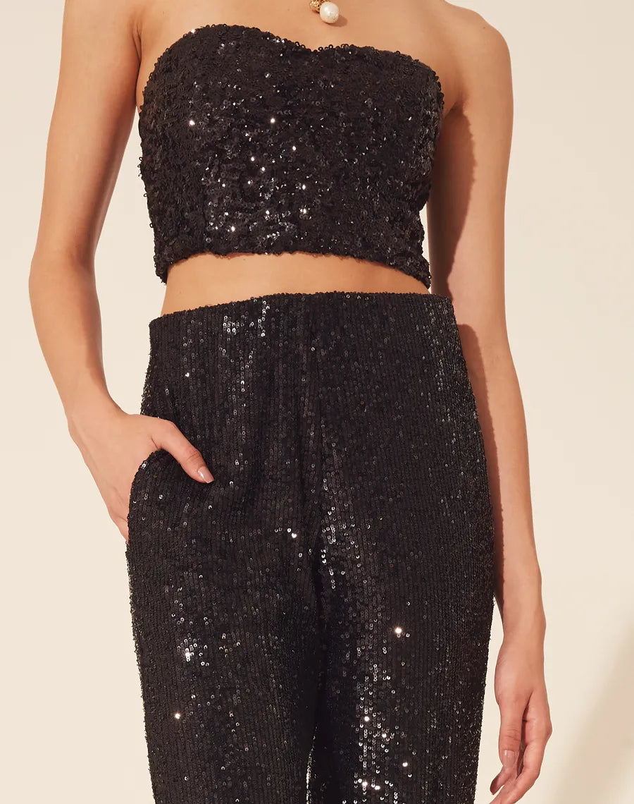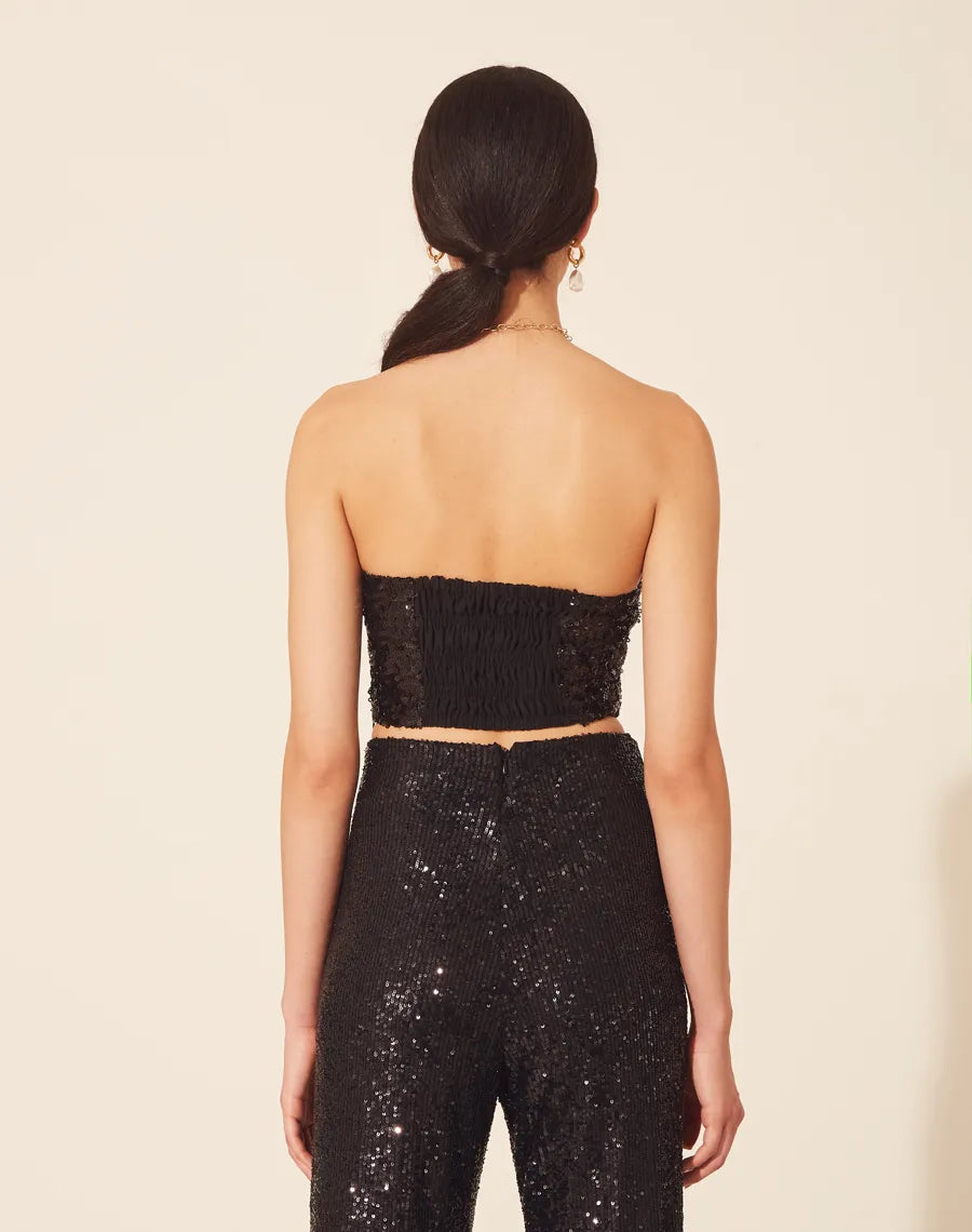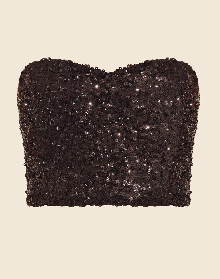 Top Paetê Iivia, possui decote coração sem alças e possui forro.
